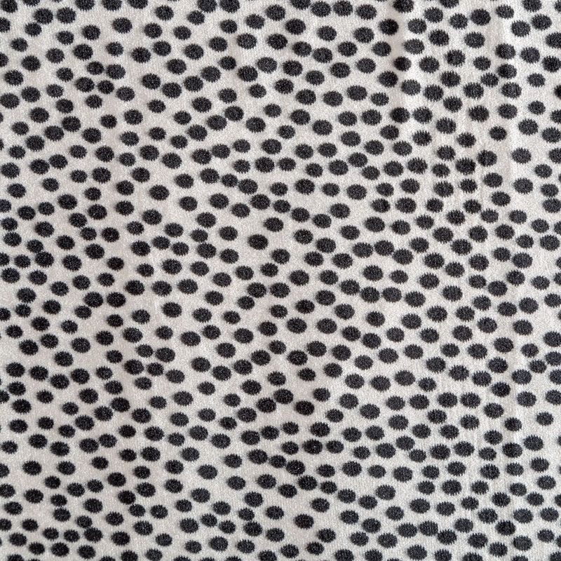 Пластичная, мягкая бархатная ткань с мелким принтом в черный горох. Ткань очень приятна на ощупь, не мнется, хорошо тянется за счет эластана в составе и драпируется. Бархат идеально подходит для пошива вечерних платьев, юбок, костюмов, а также стильных жакетов, бомберов и аксессуаров.