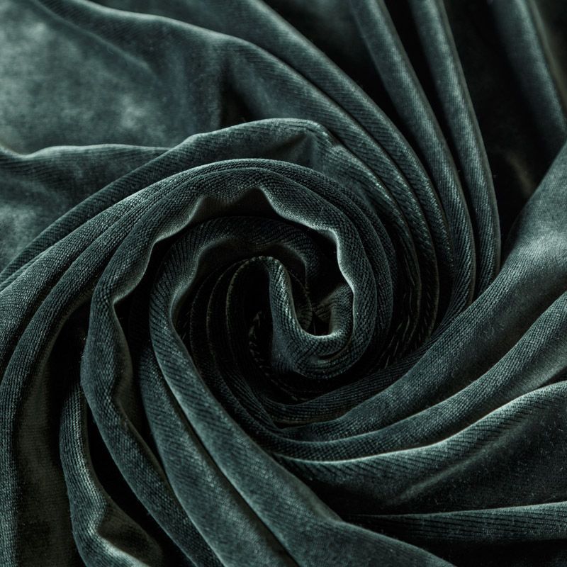 Хлопковый бархат припыленного темно-зеленого оттенка. Ткань плотная, мягкая с коротким ворсом, отлично держит форму. Имеет благородный матовый оттенок. Подойдет для пошива нарядного костюма, жакета, юбки, жилета, шорт, комбинезонов, брюк, платья-футляр, легкого пальто или бомбера.
