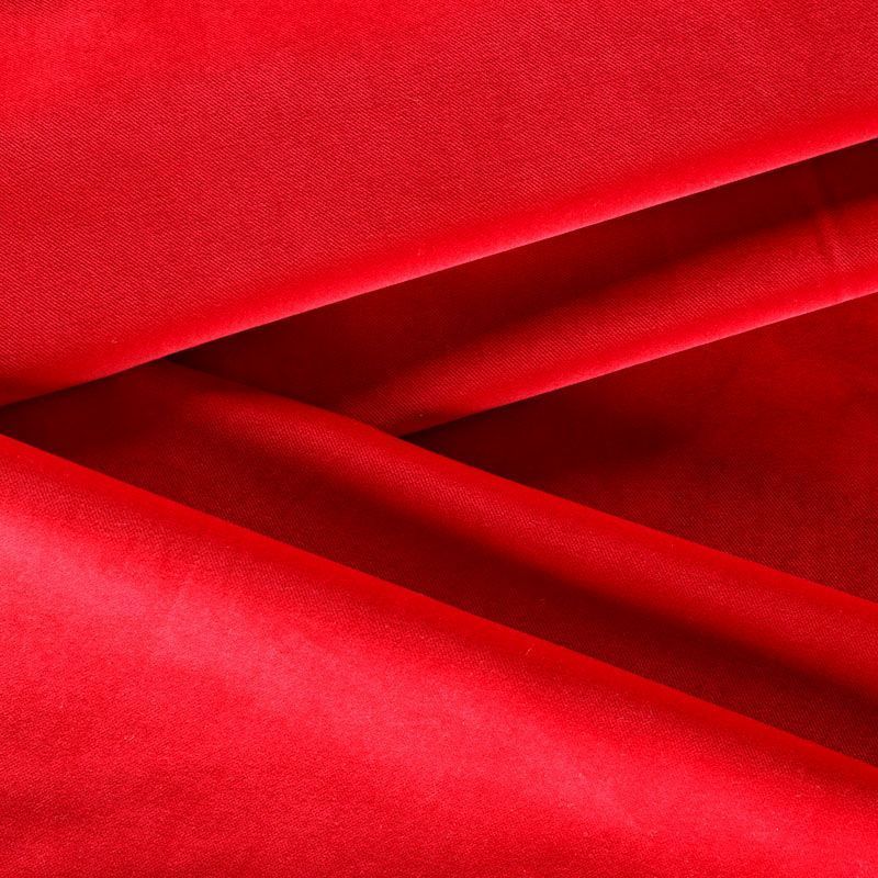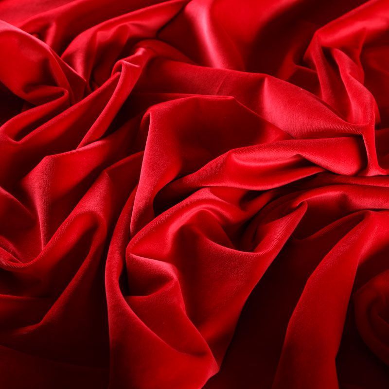 Хлопковый итальянский бархат красного оттенка. Ткань плотная, мягкая с коротким ворсом. Не грубая, хорошо драпируется, тянется за счет эластана в составе. Имеет благородный матовый оттенок. Подойдет для пошива нарядного костюма, жакета, юбки, жилета, шорт, комбинезонов, брюк, платья-футляр, легкого пальто или бомбера.