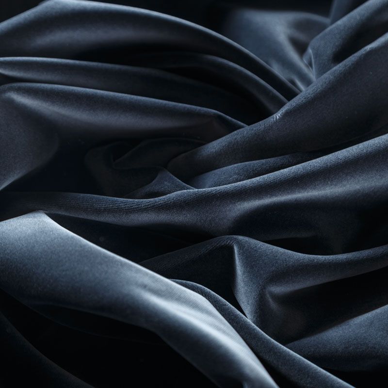 Хлопковый итальянский бархат синего оттенка. Ткань плотная, мягкая с коротким ворсом. Не грубая, хорошо драпируется. Имеет благородный матовый оттенок. Подойдет для пошива нарядного костюма, жакета, юбки, жилета, шорт, комбинезонов, брюк, платья-футляр, легкого пальто или бомбера.