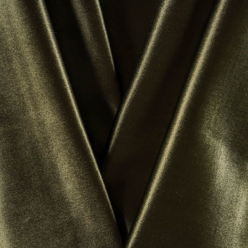 Плотный хлопковый итальянский бархат оттенка хаки со сдержанным глянцем на поверхности. Ткань очень приятная на ощупь, гладкая шлифованная поверхность, хорошо держит форму. Идеальный вариант для нарядного костюма, жакета, легкого пальто, юбки, жилета, брюк, платья-футляра.