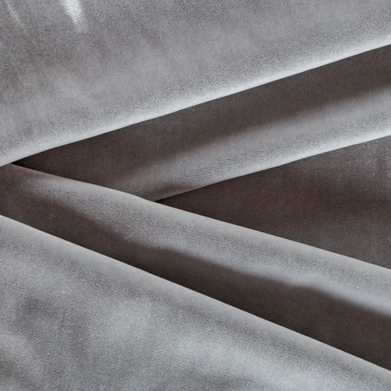 Итальянский бархат жемчужно-сером оттенке от бренда Ungaro. Ткань легкая, пластичная, мягкая, с коротким и блестящим ворсом, имеющим направление, очень приятная на ощупь, прекрасно драпируется. Подойдет для платья, юбки, туники, блузки, комбинезона, свободных брюк и костюма свободного кроя.