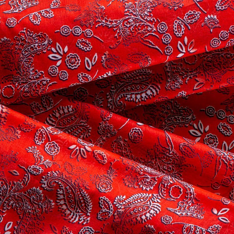 Итальянский хлопковый батист с мелким цветочным принтом в черно-белой гамме на ярком красном фоне. Ткань очень легкая, прозрачная, приятная на ощупь, нежная, пластичная, хорошо и мягко драпируется, летящая. Батист подойдёт для модных блуз с объёмными рукавами, летних платьев и сарафанов с длинной летящей юбкой, прозрачных рубашек, декорированных объёмными бантами, туник и топов.