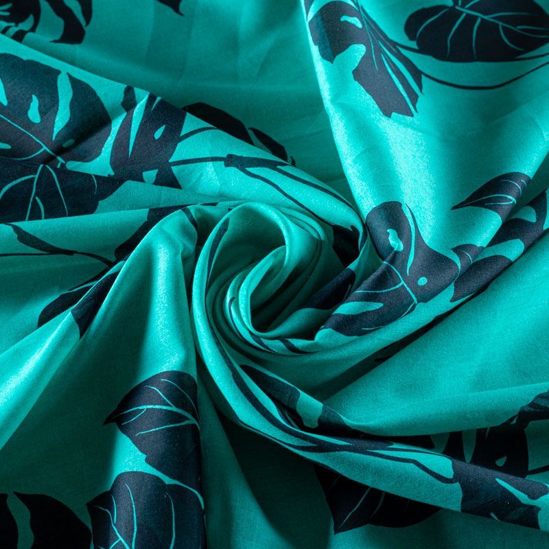 Итальянский хлопковый батист насыщенного бирюзового цвета с растительным прринтом. Ткань очень легкая, прозрачная, приятная на ощупь, нежная, пластичная, хорошо и мягко драпируется, летящая. Батист подойдёт для модных блуз с объёмными рукавами, летних платьев и сарафанов с длинной летящей юбкой, прозрачных рубашек, декорированных объёмными бантами, туник и топов.