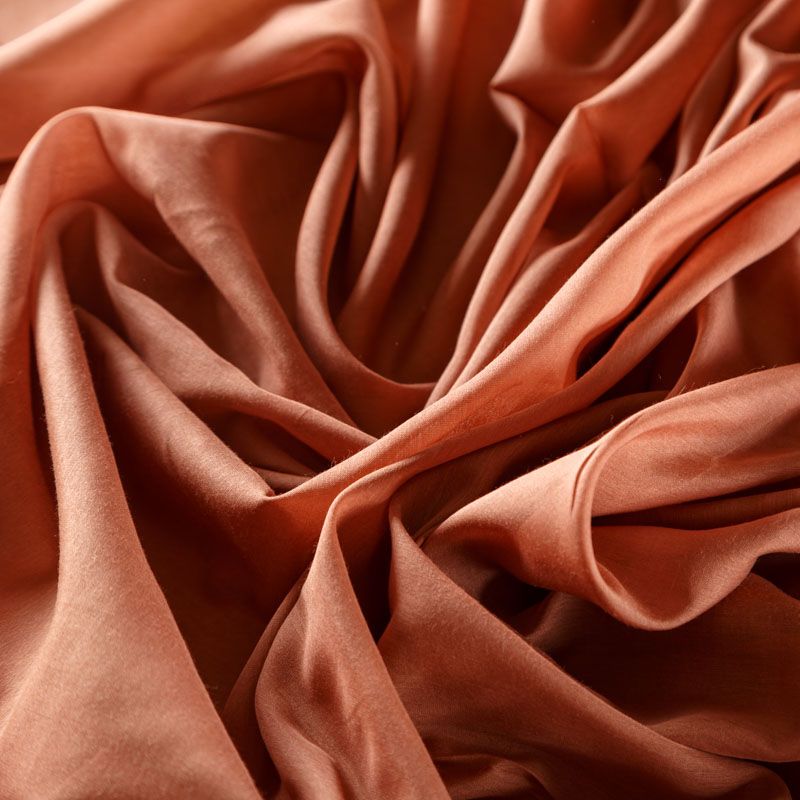 Итальянский хлопковый батист в терракотовом оттенке, тонкий, легкий, полупрозрачный, приятный на ощупь, нежный, хорошо и мягко драпируется, летящий. Батист подойдёт для модных блуз с объёмными рукавами, летних платьев и сарафанов с длинной летящей юбкой, прозрачных рубашек, декорированных объёмными бантами, детской одежды.