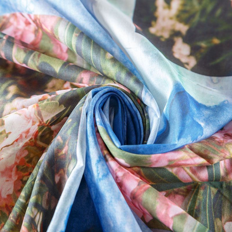 Итальянский хлопковый батист с фотопринтом в голубых и зеленых оттенках. Ткань очень легкая, прозрачная, приятная на ощупь, нежная, пластичная, хорошо и мягко драпируется, летящая. Батист подойдёт для модных блуз с объёмными рукавами, летних платьев и сарафанов с длинной летящей юбкой, прозрачных рубашек, декорированных объёмными бантами, туник и топов.