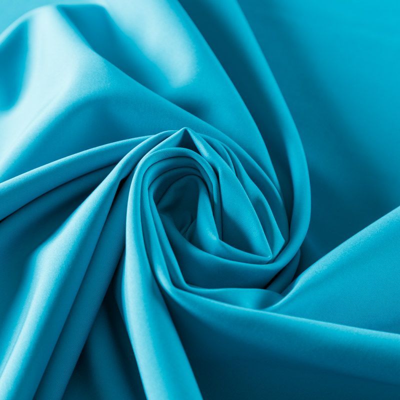 Итальянский плотный матовый бифлекс бирюзового оттенка. Ткань отлично тянется во всех направлениях, не прозрачный, одежда из него не сковывает движения. Хорошо впитывает влагу и быстро высыхает, не вызывет аллергии и раздражения. Подойдет для пошива купальников, пляжных и коктейльных платьев, топов, боди, леггинсов, велосипедок и лосин, костюмов фигуристов, танцоров, гимнастов.
