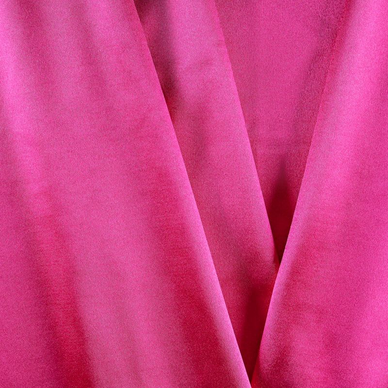 Лицевая сторона ткани с выраженным блеском, очень приятная на ощупь, "скользкая", как шелк. Ткань плотная, отлично тянется, одежда из него не сковывает движения. Хорошо впитывает влагу и быстро высыхает, не вызывет аллергии и раздражения. Подойдет для пошива купальников, парео, пляжных и коктейльных платьев, леггинсов и лосин, костюмов фигуристов, танцоров, гимнастов.