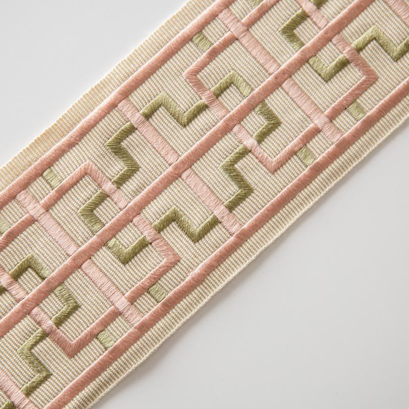Бордюр жаккардовый 7 см 0000-357-104-012 молочным с зелено-розовым