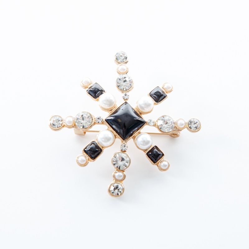 Брошь декоративная 55х30 мм стразы ACS0477 золотой/черный в Ухте
