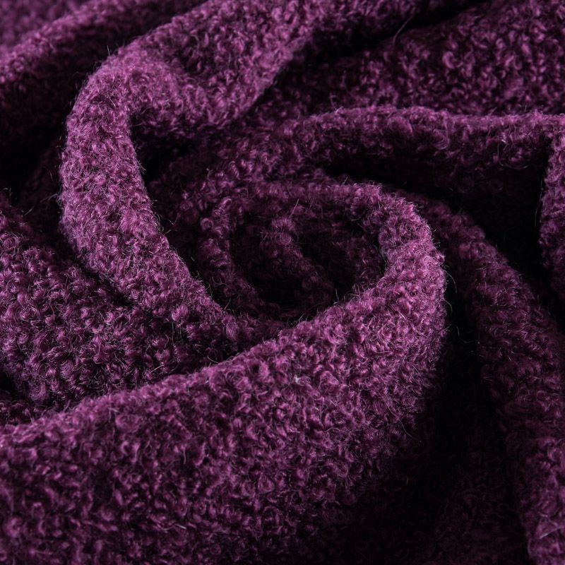 Итальянская мягкая, уютная и теплая шерстяная ткань с буклированной поверхностью насыщенного ягодного оттенка. Полотно пластичное, нежное, не мнется, отлично драпируется, устойчиво к деформации. Отлично подойдет на пальто, кардиган, пончо, бомбер, теплый костюм и другие виды верхней одежды.