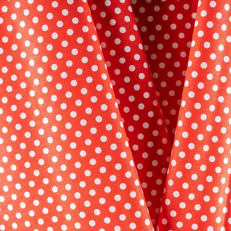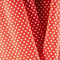 Плотная натуральная ткань с особым принципом переплетения нитей: крест-накрест. Имеет гладкую матовую поверхность чуть шероховатую на ощупь, не тянется, немного просвечивает. Прочная и стойкая к износу, надолго сохраняет яркость красок, не растягивается при стирке, практически не мнется. Мелкий белый горошек (5 мм) на насыщенном красном фоне прекрасно подойдет для пошива постельного белья, изготовления пеленок, бортиков для кроватки, домашней одежды и других предметов интерьера.
