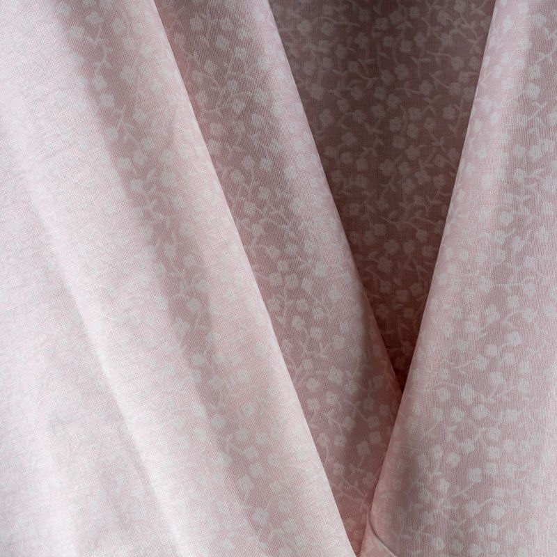 Плотная натуральная ткань с особым принципом переплетения нитей: крест-накрест. Имеет гладкую матовую поверхность, немного шероховатая на ощупь, не тянется, немного просвечивает. Прочная и стойкая к износу, надолго сохраняет яркость красок, практически не мнется. Милый принт в виде мелких белых цветочков на нежнейшем розовом фоне прекрасно подойдет для пошива постельного белья, изготовления пеленок, бортиков для кроватки, домашней одежды и других предметов интерьера.