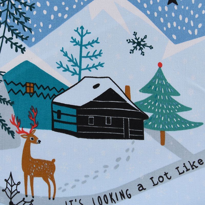 Узкая плотная хлопковая ткань с твидовым плетением елочкой и ярким новогодним принтом. Идельно подойдет для украшения праздничного стола, итерьера, для пошива кухонных полотенец, салфеток, персонников, фартуков, прихваток и т.д.
