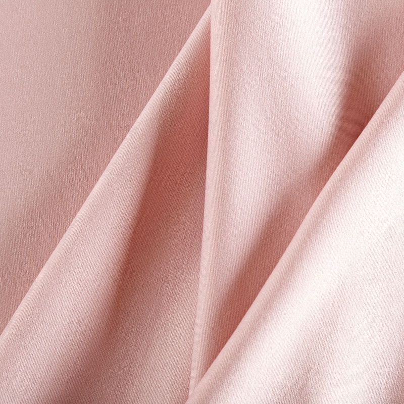 Вискозное трикотажное полотно средней плотности. Обе стороны ткани ровные, гладкие. Материал эластичный, упругий, имеет растяжимость по всем сторонам, держит форму, уютный, приятный к телу и удобный в носке. Применяется в пошиве платьев, юбок, костюмов, жакетов.