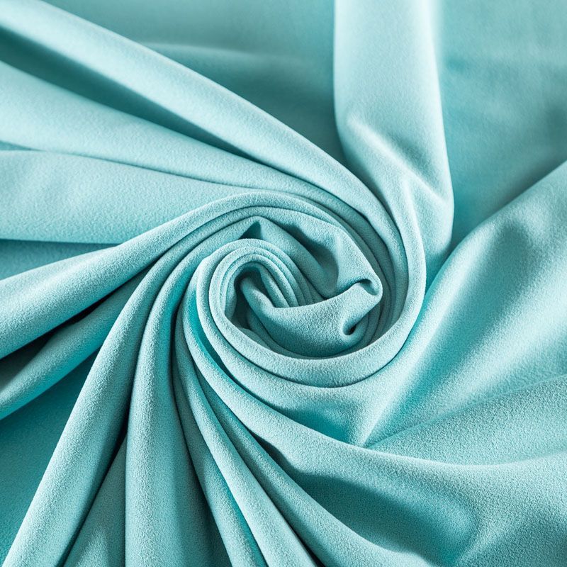 Плотное трикотажное полотно с креповой поверхностью. Материал эластичный, имеет растяжимость по всем сторонам, хорошо держит форму, уютный, приятный к телу и удобный в носке. Применяется в пошиве платьев, юбок, костюмов, жакетов.