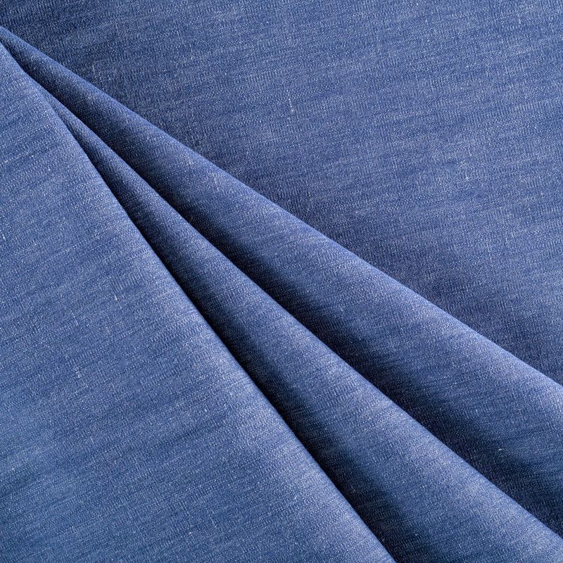 Итальянское джинсовое полотно сине-голубого оттенка. Поверхность ткани матовая, полотняного плетения. Материал имеет среднюю плотность, при небольшой толщине, мягкий и приятный на ощупь, обладает устойчивостью к истиранию и механическим повреждениям. Подойдет для пошива рубашек, сарафанов, платьев, юбок, шорт, брюк-джоггеров, лёгких курток и жакетов.