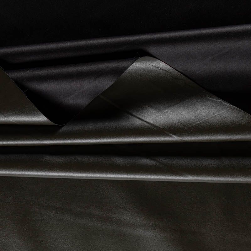 Искусственный материал, имитирующий натуральную кожу, на трикотажной основе. Изнаночная сторона - белая. Экокожа тоньше натуральной, не мнется, пластична, хорошо облегает фигуру. Подойдет для пошива куртки, костюма, платья, юбки, брюк, шорт, комбинезона, сумки, рюкзака.