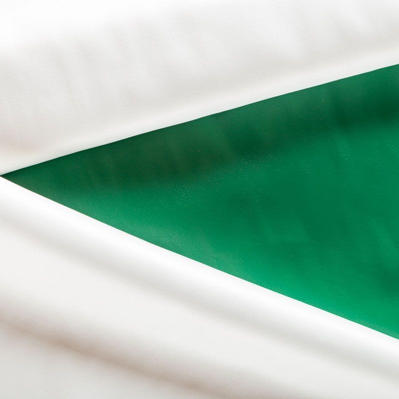 Искусственный материал, имитирующий натуральную кожу, на трикотажной основе. Изнаночная сторона - белого цвета. Экокожа тоньше натуральной, не мнется, пластична, тянется, хорошо облегает фигуру. Подойдет для пошива куртки, костюма, платья, юбки, брюк, шорт, комбинезона, сумки, рюкзака.