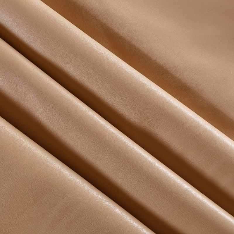 Искусственный материал, имитирующий натуральную кожу бежевого цвета. Поверхность ткани матовая, гладкая, изнаночная сторона с имитацией светлой замши. Приятная на ощупь, тянется, не просвечивает, пластичная. Подойдет для пошива куртки, костюма, платья, юбки, брюк, шорт, комбинезона, сумки, рюкзака.