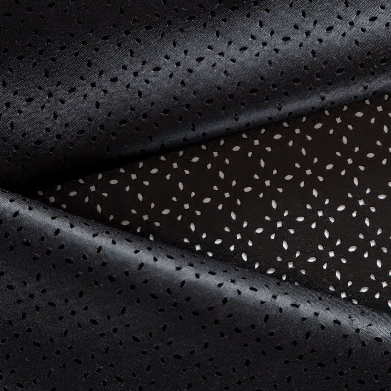 Искусственный материал, имитирующий натуральную кожу, на трикотажной основе. Поверхность матовая, с ажурной лазерной перфорацией. Экокожа тоньше натуральной, не мнется, пластична, тянется, хорошо облегает фигуру. Подойдет для пошива куртки, костюма, платья, юбки, брюк, шорт, комбинезона, сумки, рюкзака.