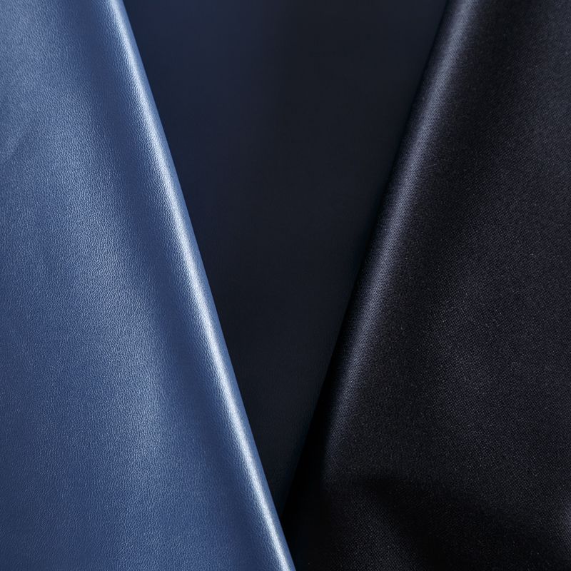 Искусственный материал, имитирующий натуральную кожу, на черной трикотажной основе. Экокожа тоньше натуральной, не мнется, пластична, хорошо тянется за счет эластана в составе, облегает фигуру. Подойдет для пошива куртки, костюма, платья, юбки, брюк, шорт, комбинезона, сумки, рюкзака.