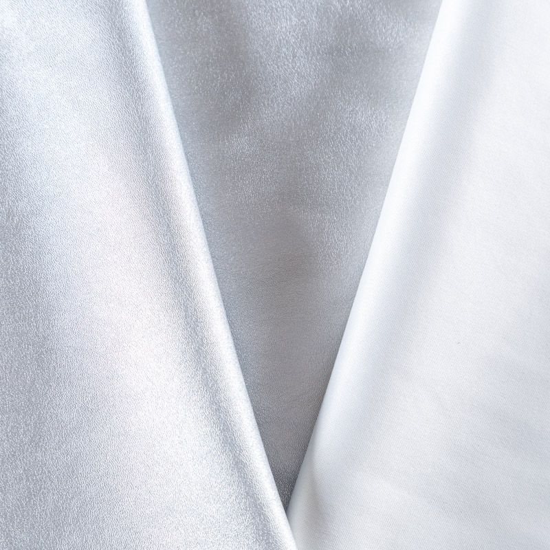 Искусственный материал, имитирующий натуральную кожу, на светлой трикотажной основе. Экокожа тоньше натуральной, не мнется, пластична, хорошо тянется за счет эластана в составе, облегает фигуру. Подойдет для пошива куртки, костюма, платья, юбки, брюк, шорт, комбинезона, сумки, рюкзака.
