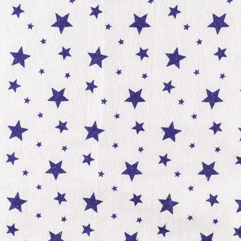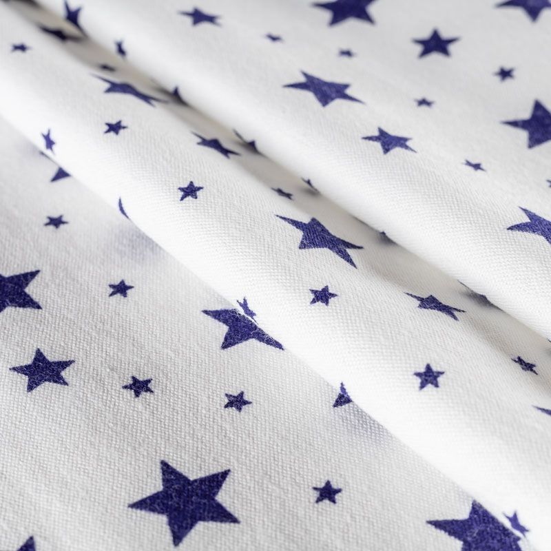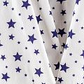 Износостойкий мягкий материал, не раздражает кожу, не садится, отлично впитывает влагу и хорошо удерживает тепло. На внутренней стороне короткий мягкий ворс. Милый принт в виде синих звездочек разного размера на белом фоне прекрасно подойдет для пошива постельного белья, изготовления пеленок, бортиков для кроватки, домашней одежды, пижамы и других предметов интерьера.