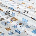 Износостойкий мягкий материал, не раздражает кожу, не садится, отлично впитывает влагу и хорошо удерживает тепло. На лицевой стороне мягкий ворс. Милый детский принт в виде рисованных тропических животных на белом фоне прекрасно подойдет для пошива постельного белья, изготовления пеленок, бортиков для кроватки, домашней одежды, пижамы и других предметов интерьера.