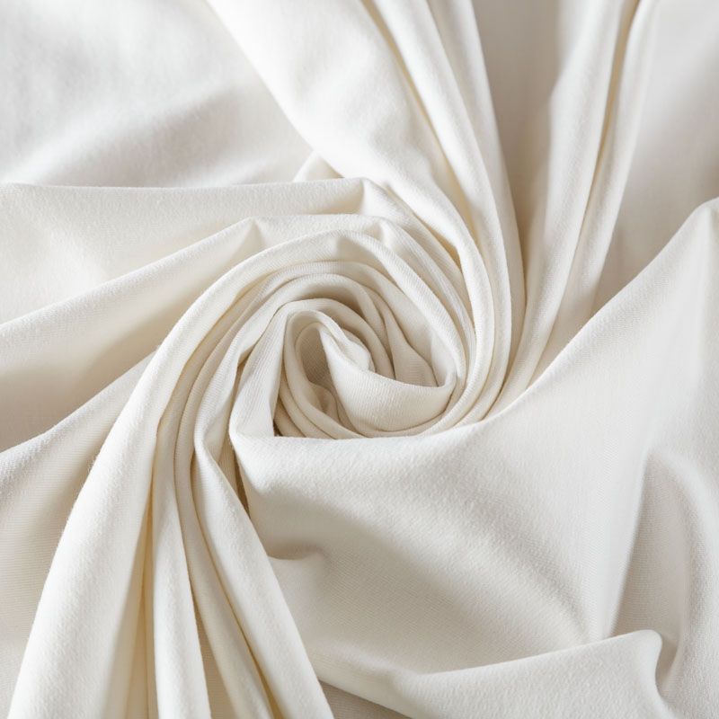 Плотный, но мягкий эластичный трикотаж. Лицевая сторона гладкая, без блеска, мелкой вязки. Изнанка – с небольшим однородным ворсом или петля. Прекрасный вариант для пошива платьев и костюмов, легких толстовок, свитшотов, спортивной, детской и  домашней одежды.