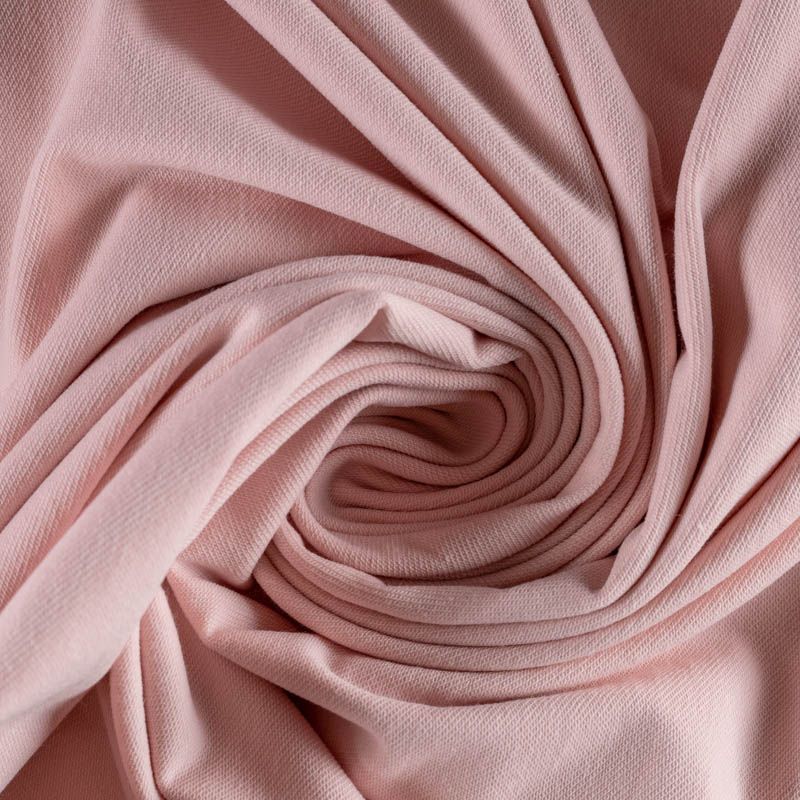 Плотный, но мягкий эластичный трикотаж. Лицевая сторона гладкая, без блеска, мелкой вязки. Изнанка – с небольшим однородным ворсом или петля. Прекрасный вариант для пошива платьев и костюмов, легких толстовок, свитшотов, спортивной, детской и  домашней одежды.