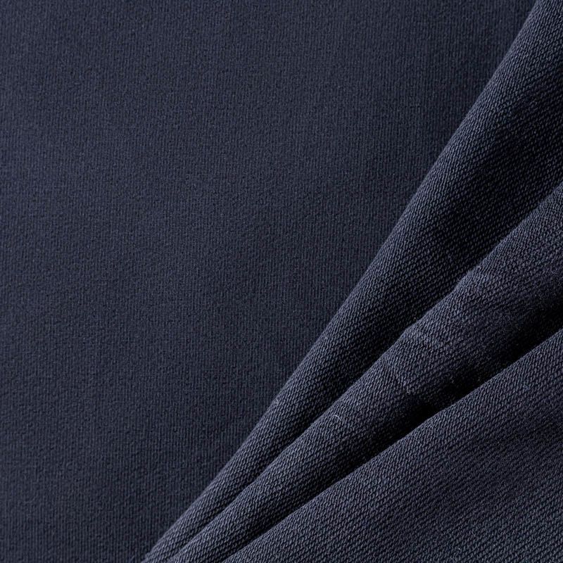Плотный, но мягкий эластичный трикотаж. Лицевая сторона гладкая, без блеска, мелкой вязки. Изнанка – с небольшим однородным ворсом или петля. Прекрасный вариант для пошива платьев и костюмов, легких толстовок, свитшотов, спортивной, детской и  домашней одежды.