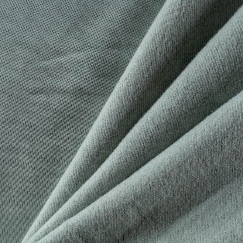 Плотный, но легкий и мягкий, с начесом по изнанке. Ткань хорошо тянется, прочная и износостойкая.  Лицевая сторона имеет выраженную трикотажную структуру. Подходит для пошива утепленных  спортивных костюмов, свитшотов, джемперов.