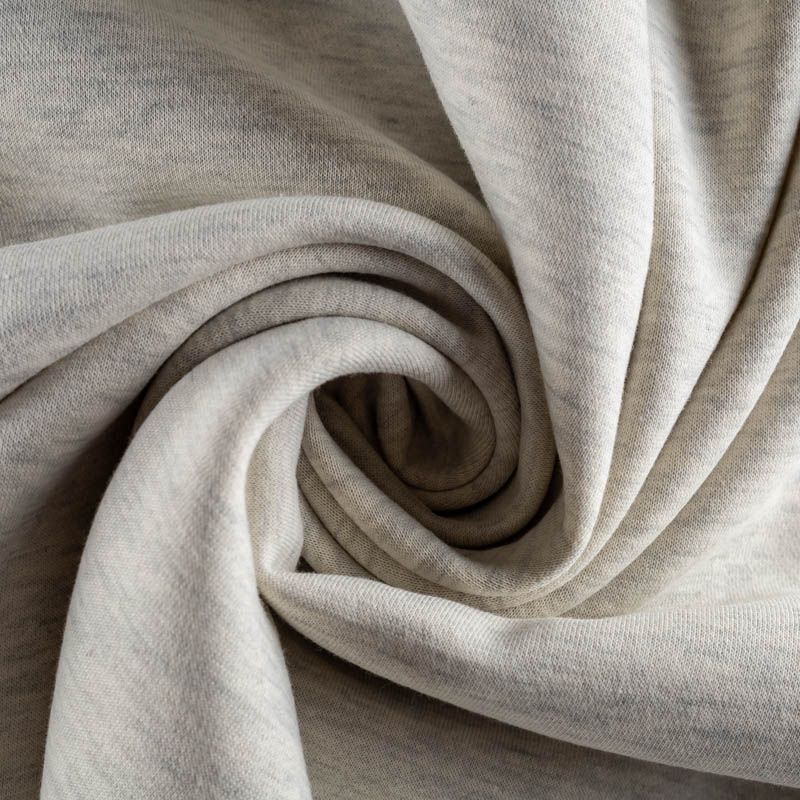 Плотный, но легкий и мягкий, с начесом по изнанке. Ткань хорошо тянется, прочная и износостойкая.  Лицевая сторона имеет гладкую трикотажную структуру. Подходит для пошива утепленных  спортивных костюмов, свитшотов, джемперов.
