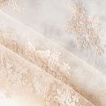 Итальянский гипюр с воздушным кружевным орнаментом, который соединяет прозрачная тонкая сетка пудрового оттенка. Вышивка выполнена вискозной нитью не очень плотно, поэтому полотно тонкое, легкое, очень мягкое и пластичное, хорошо драпируется, приятное тактильно. С обеих сторон ткань украшена симметричными фестонами, что придает ей законченный и нарядный вид. Великолепно будет смотреться в нарядном вечернем, свадебном платье, платье на выпускной бал, в юбках, блузках, топах.