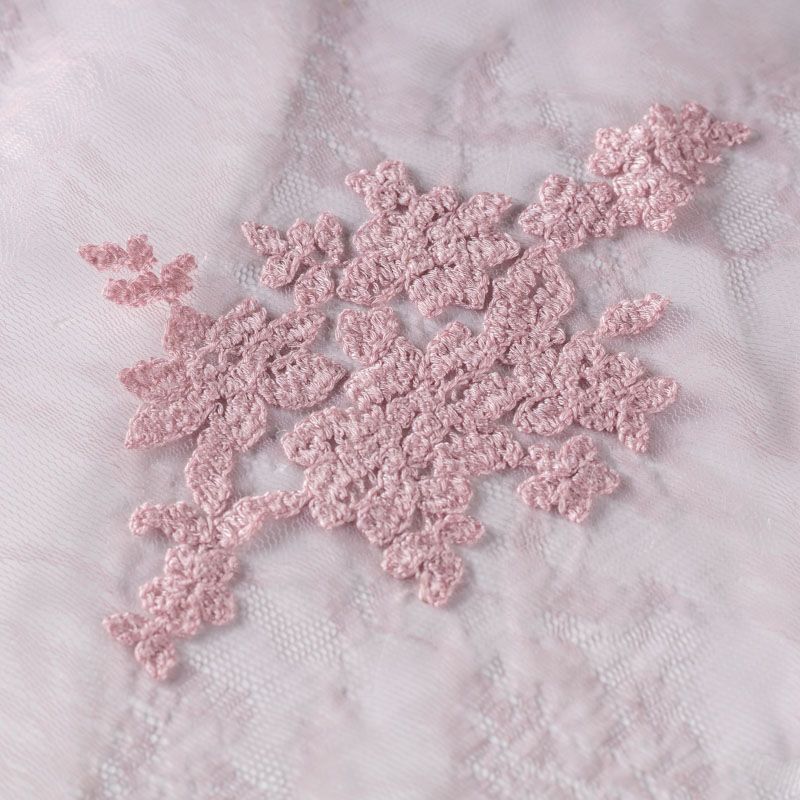 Итальянский гипюр с воздушным кружевным орнаментом, который соединяет прозрачная тонкая сетка розового оттенка. Вышивка выполнена вискозной не очень плотно, поэтому полотно тонкое, легкое, очень мягкое и пластичное, хорошо драпируется, приятное тактильно. С обеих сторон ткань украшена симметричными фестонами, что придает ей законченный и нарядный вид. Великолепно будет смотреться в нарядном вечернем, свадебном платье, платье на выпускной бал, в юбках, блузках, топах.