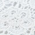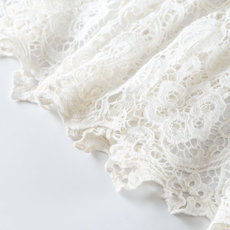 Итальянский хлопковый гипюр-макраме представляет собой ажурное полотно, имеющее рельефную текстуру с цветочным ажурным плетением по всей ширине. Материал прозрачный на теле и на просвет, требуется подклад. Всегда актуален при создании утончённых и роскошных нарядов, придавая им дороговизны и оригинальности. Может использоваться для пошива платьев, костюмов прямого кроя, изготовления декоративных элеметов.