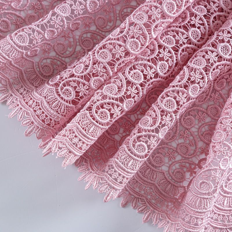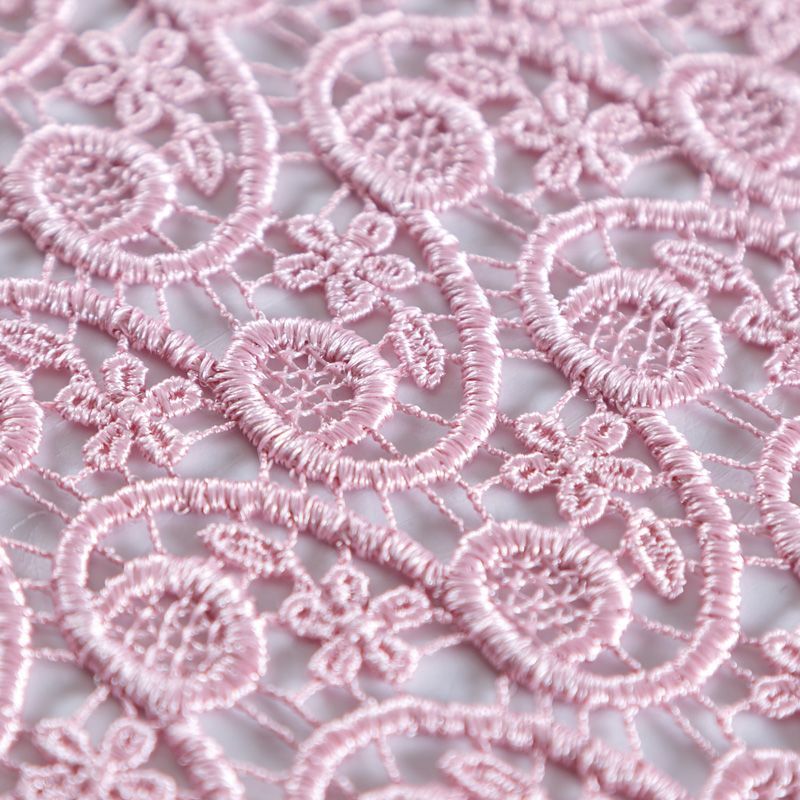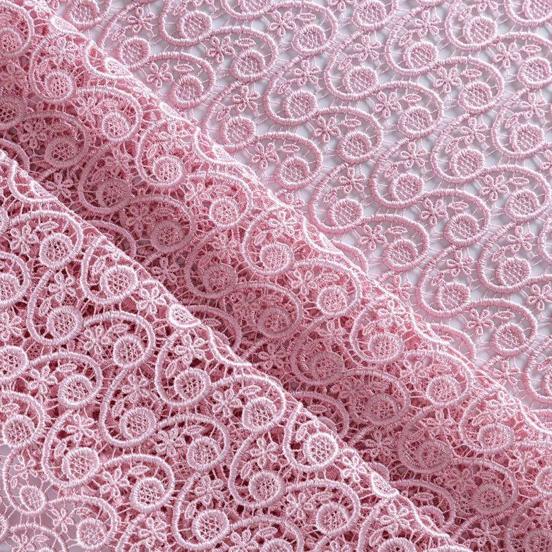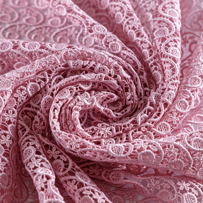 Гипюр-макраме представляет собой ажурное полотно, имеющее рельефную текстуру с цветочным ажурным плетением по всей ширине и фестонами по обе стороны кромок. Материал прозрачный на теле и на просвет, требуется подклад. Всегда актуален при создании утончённых и роскошных нарядов, придавая им дороговизны и оригинальности. Может использоваться для пошива платьев, костюмов прямого кроя, изготовления декоративных элеметов. Набирается на изделие объемом.