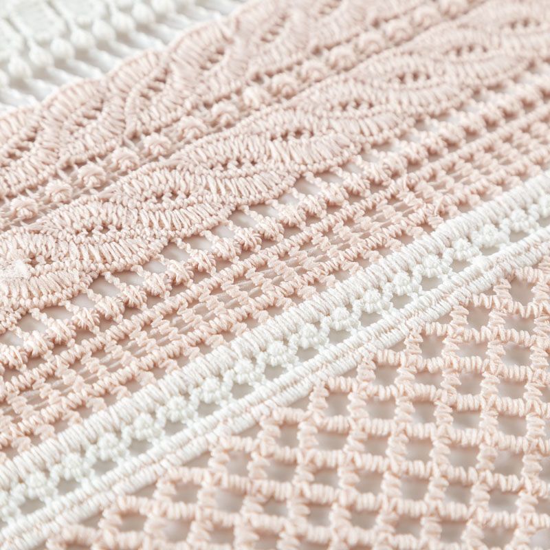Гипюр-макраме представляет собой ажурное полотно, имеющее рельефную текстуру. На ощупь достаточно жесткий, держит форму. Требуется подклад. Всегда актуален при создании элегантных и роскошных нарядов, придавая им дороговизны и оригинальности. Может использоваться для пошива платьев, юбок, шорт, костюмов прямого кроя, изготовления декоративных элеметов. Набирается на изделие объемом.
