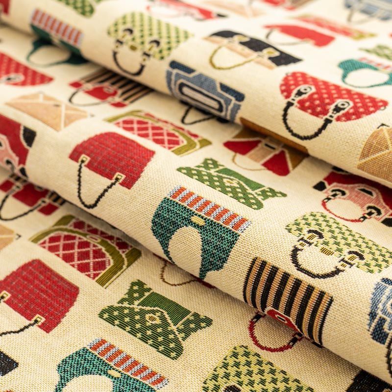 Гобелен представляет собой ткань, выполненную  перекрестным плетением нитей с одномоментным созданием сюжетной или орнаментальной композиции. Это плотный материал высокую прочность и износостойкость. Гобелен используют для пошива плотных светонепроницаемых штор, декоративного домашнего текстиля и аксессуаров, в мебельном производстве для обивки мебели. Так же применяется в рукоделии: модные кошельки, сумочки, пояса и другие аксессуары и при изготовлении дизайнерской одежды. На спокойном песочном фоне цветное разнообразие милых женских сумочек, клатчей, кошелечков.