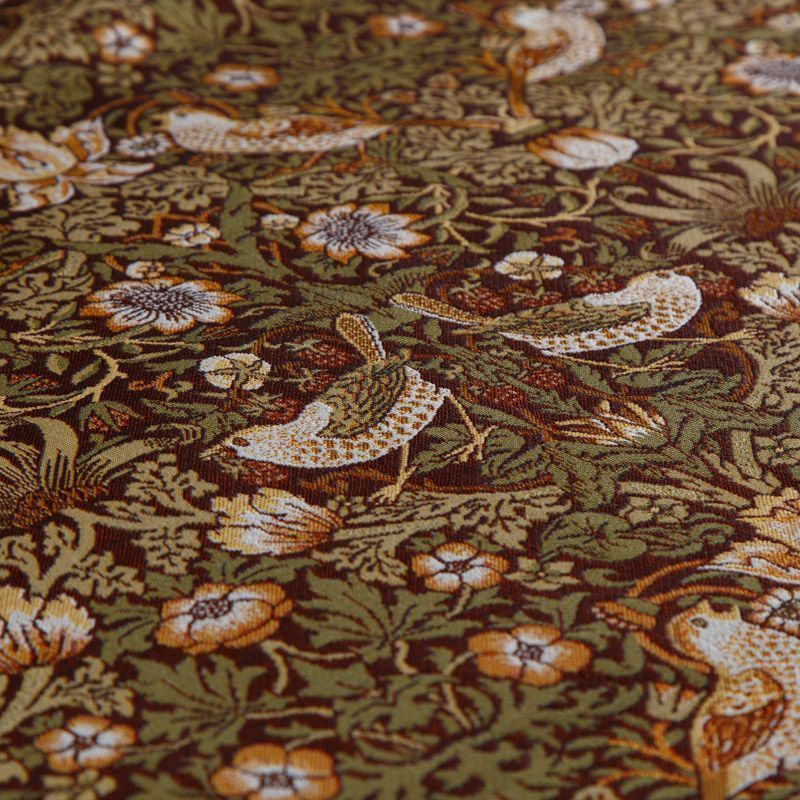 Гобелен из эксклюзивной коллекции Уильяма Морриса Земляничный вор - это классический и наверно самый узнаваемый сегодня принт, он был создан в 1883 году и стал настоящим символом английского интерьера. Земляника символизируется с крепкими и чистыми чувствами и в древнем мире считалась хранительницей всего живого. Изделия с таким принтом прекрасно украсят интерьер дома. Ткань хорошо подходит для обивки мебели, изготовления домашнего текстиля, штор, декоративных подушек, покрывал, текстильных настенных панно, абажуров, а также для пошива одежды и аксессуаров.