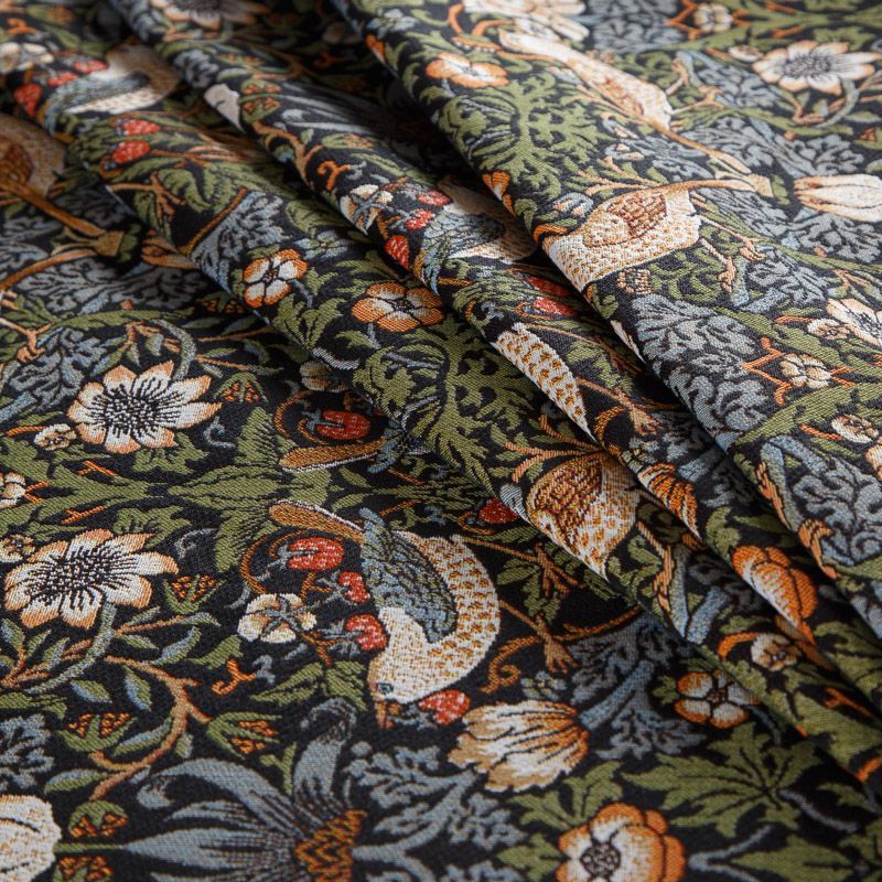 Гобелен из эксклюзивной коллекции Уильяма Морриса Земляничный вор - это классический и наверно самый узнаваемый сегодня принт, он был создан в 1883 году и стал настоящим символом английского интерьера. Земляника символизируется с крепкими и чистыми чувствами и в древнем мире считалась хранительницей всего живого. Изделия с таким принтом прекрасно украсят интерьер дома. Ткань хорошо подходит для обивки мебели, изготовления домашнего текстиля, штор, декоративных подушек, покрывал, текстильных настенных панно, абажуров, а также для пошива одежды и аксессуаров.