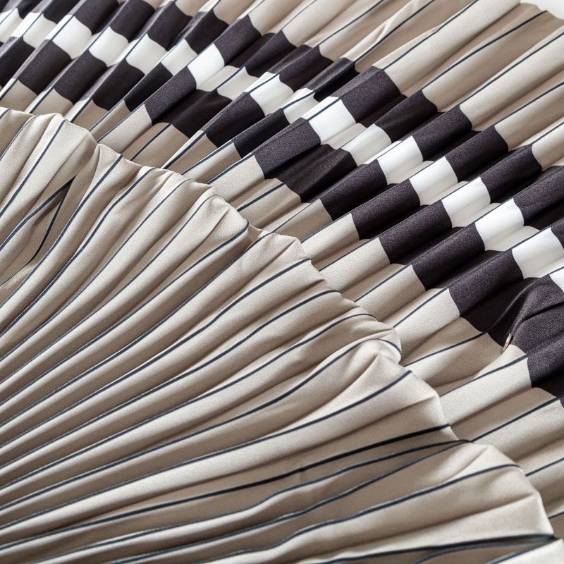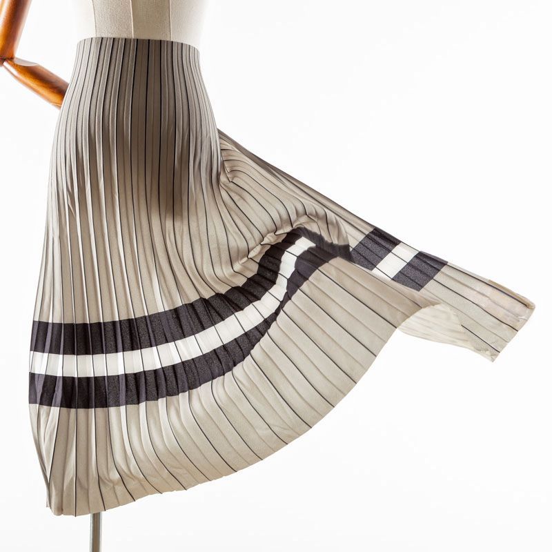 Готовый гофрированный купон из матовой креповой ткани серовато-оливкового оттенка с черно-белой полосой. Объем по низу 190 см, по талии 70 см, длина 80 см. Ткань раскроена полусолнцем, гофре заложено сверху вниз на увеличение. Ребро складки выделено черным цветом. Гофре визуально вытягивает и стройнит фигуру, именно поэтому уже который год юбки и платья гофре находятся в числе топовых вещей женского гардероба в классическом исполнении – миди и в пол, или в оригинальном ассиметричном крое. Можно использовать для клиновидной вставки в другую юбку, в спинку или рукав.