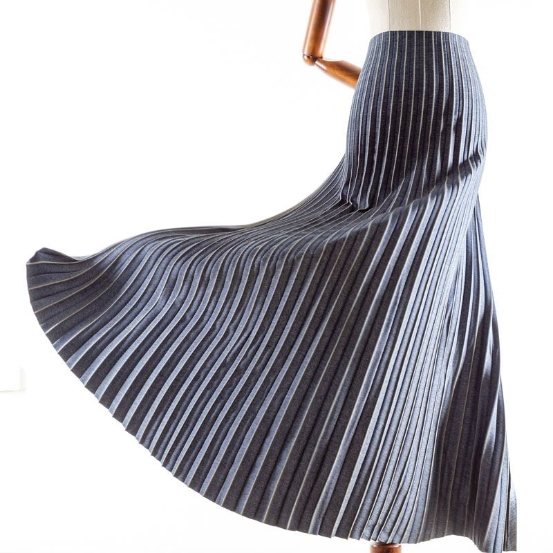 Готовый гофрированный купон из матовой твиловой ткани, имитирующей джинс. Объем по низу 160 см, по талии 60 см, длина 110 см. Ткань раскроена полусолнцем, гофре заложено сверху вниз на увеличение. Ребро складки выделено песочным цветом. Гофре визуально вытягивает и стройнит фигуру, именно поэтому уже который год юбки и платья гофре находятся в числе топовых вещей женского гардероба в классическом исполнении – миди и в пол, или в оригинальном ассиметричном крое. Можно использовать для клиновидной вставки в другую юбку, в спинку или рукав.