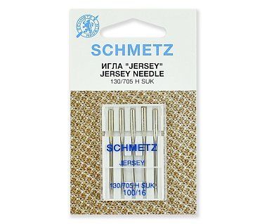 Иглы джерси № 100 предназначены для шитья вязаных шерстяных изделий. Подходят для бытовых швейных машин и оверлоков. Иглы джерси имеют закругленное острие большого диаметра, что позволяет прошивать трикотажное полотно, не нарушая его структуру. Стандарт: 130/705H SUK.