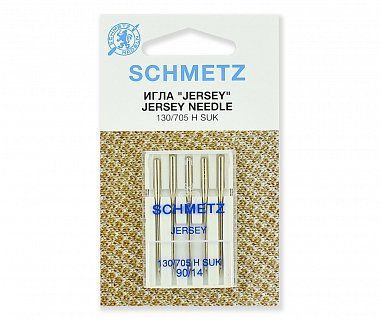 Иглы джерси № 90 предназначены для шитья трикотажных и вязаных изделий средней толщины. Подходят для бытовых швейных машин и оверлоков. Иглы джерси имеют закругленное острие большого диаметра, что позволяет прошивать трикотажное полотно, не нарушая его структуру. Стандарт: 130/705H SUK.