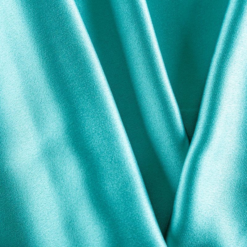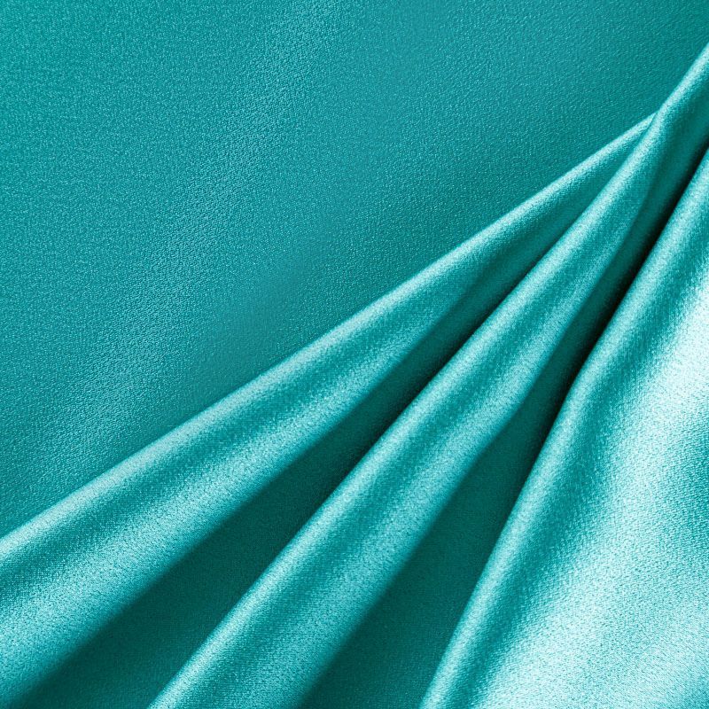 Итальянская ткань кади зеленого оттенка. Кади — это креп-атлас с красивым глянцевым блеском. Ткань с плотной фактурой, роскошно ниспадает, очень хорошо тянется, изумительно садится по фигуре и шикарно смотрится в изделии. Она хорошо драпируется, эффектно облегает. Подходит для пошива удлиненных платьев с драпировками, платья-футляра, брюк палаццо, юбки-карандаш, жакета, туники, кроп-топа, а также для вечерних, свадебных и выпускных платьев и костюмов.