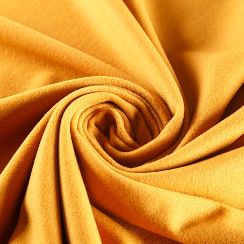Итальянский пальтовый кашемир желтого оттенка. Ткань мягкая, пластичная, приятная на ощупь, гибкая, средней толщины, при этом высокой плотности. Поверхность имеет короткий ворс. Подойдет для пошива пальто, куртки, жакета, парки, кейпа, жакета или пончо.