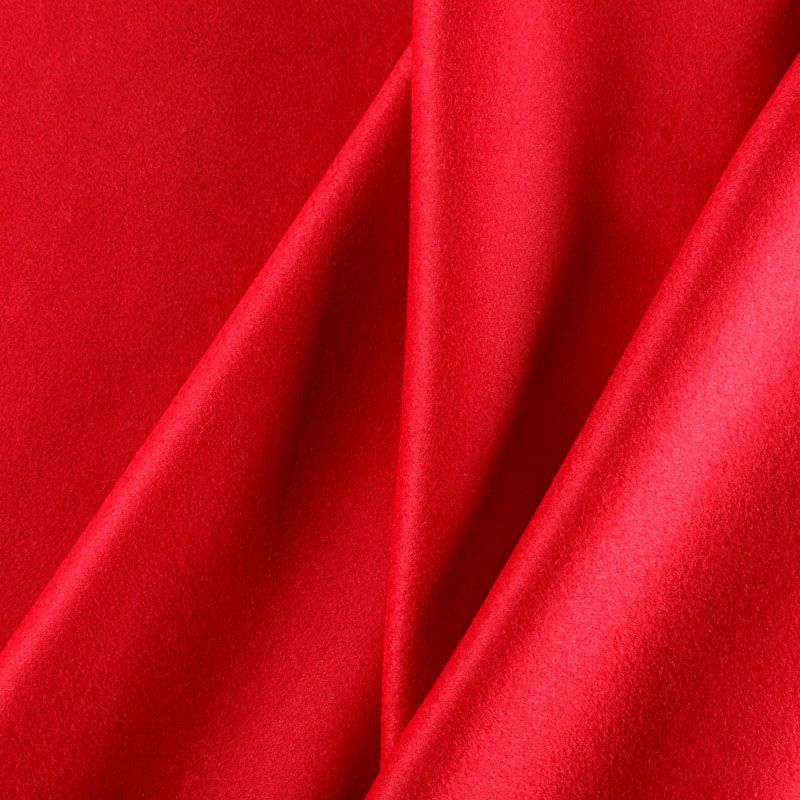 Итальянский пальтовый кашемир сочного красного оттенка. Ткань мягкая, пластичная, приятная на ощупь, гибкая, средней толщины, при этом высокой плотности. Поверхность имеет короткий ворс. Подойдет для пошива пальто, куртки, жакета, парки, кейпа, жакета или пончо.