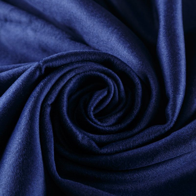 Итальянский пальтовый кашемир в благородном синем оттенке. Ткань мягкая, пластичная, приятная на ощупь, гибкая, средней толщины, при этом высокой плотности. Поверхность имеет короткий ворс. Подойдет для пошива пальто, куртки, жакета, парки, кейпа, жакета или пончо.